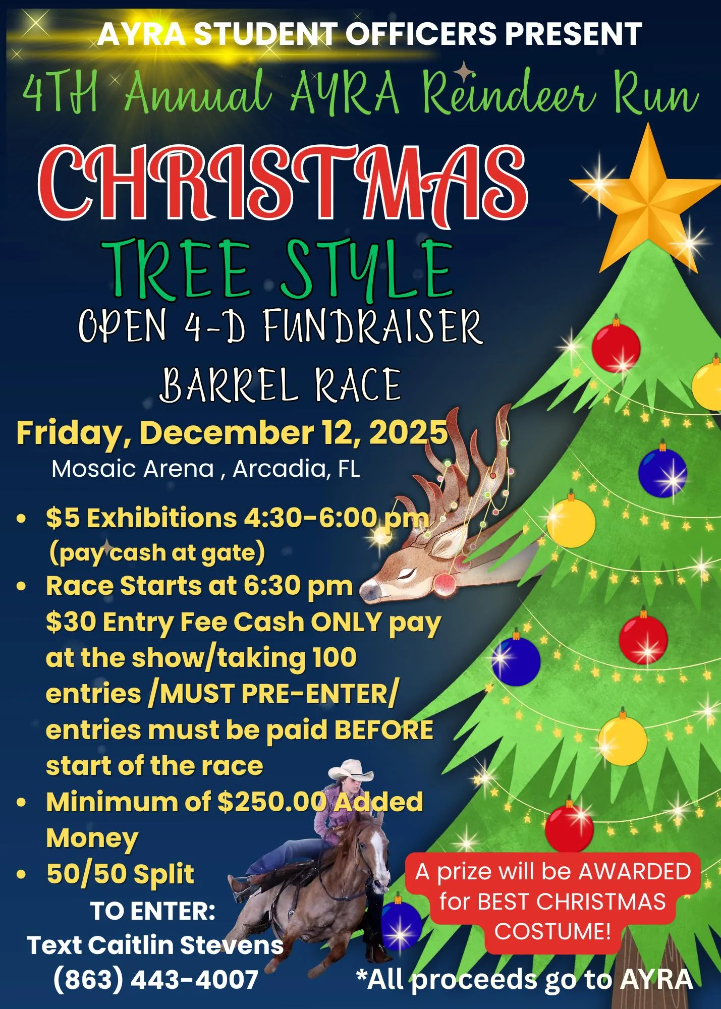 The Arcadia Youth Rodeo Association will host its Fourth Annual Reindeer Run on Friday, December 12th, starting at 4:30pm.