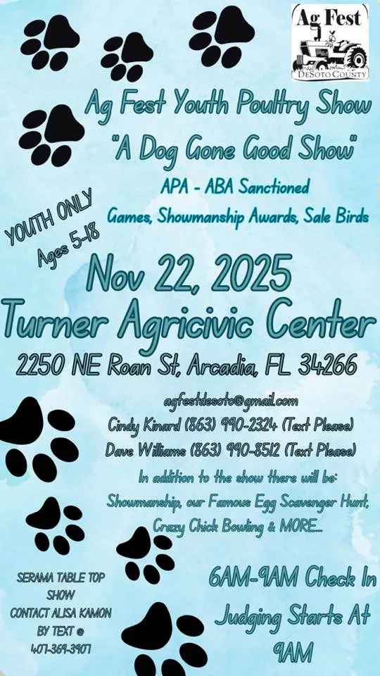 For more information, go to https://www.facebook.com/agfestpoultryshow or call the numbers below.
