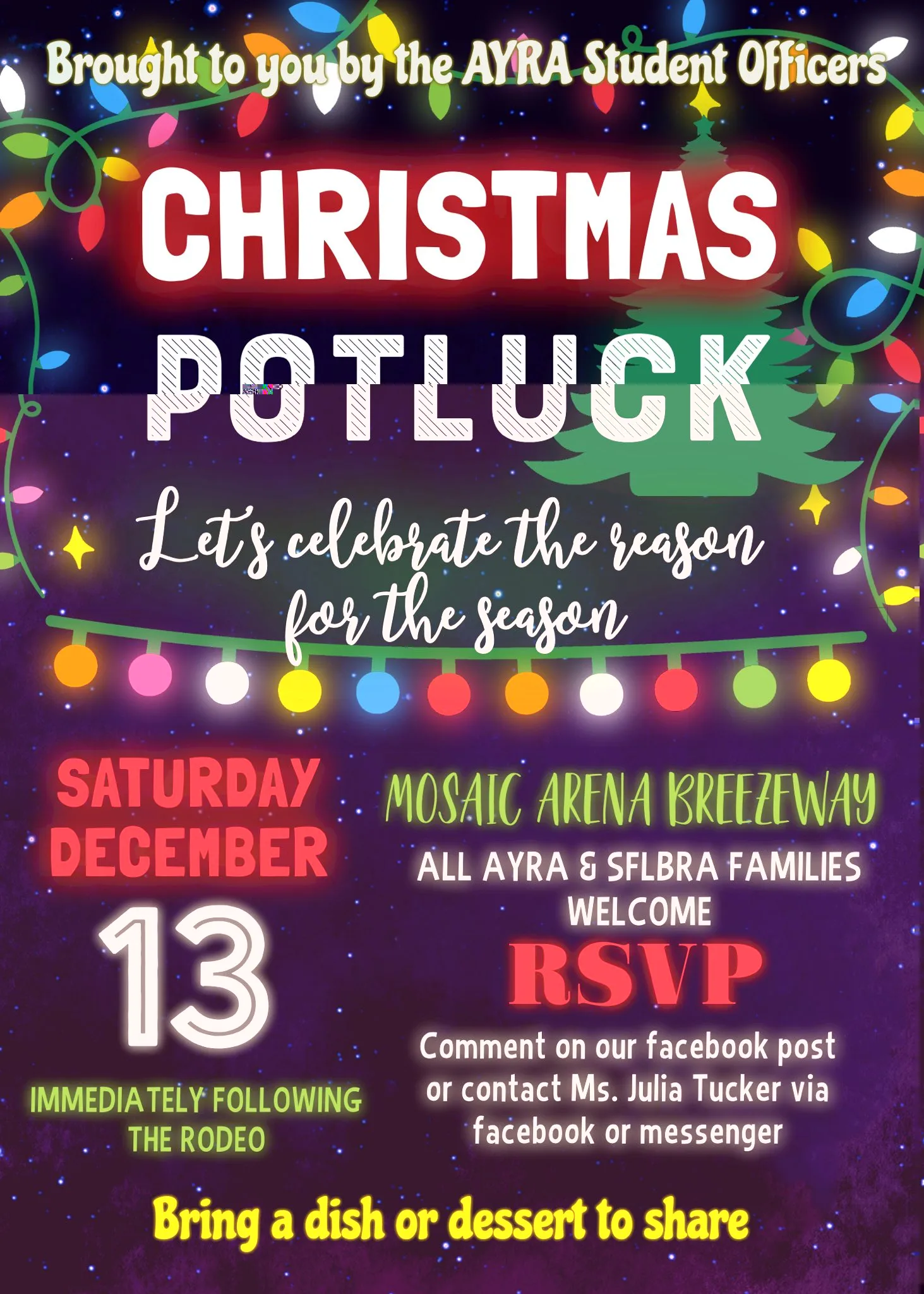 The Arcadia Youth Rodeo Association will host its annual Christmas Potluck on Saturday, December 13th.
