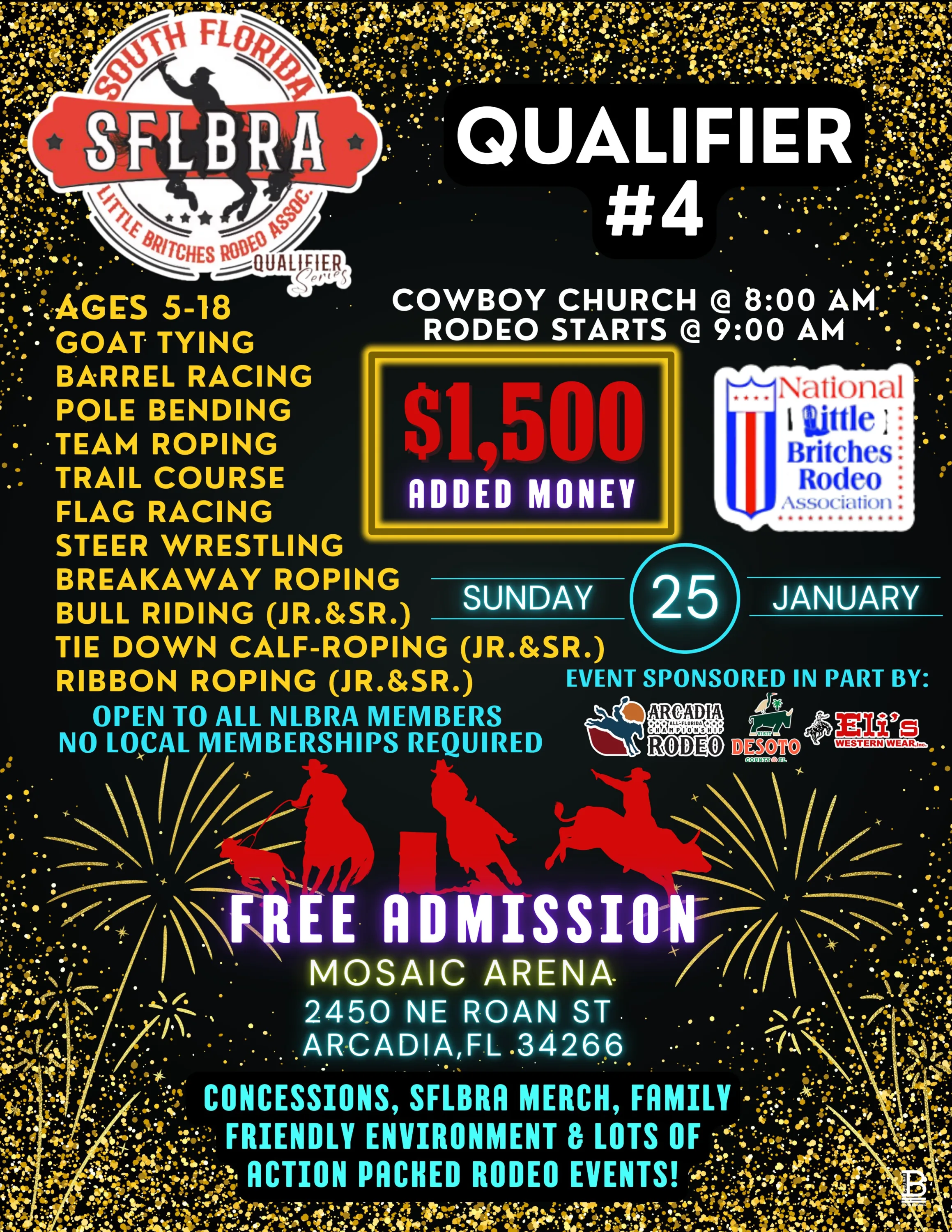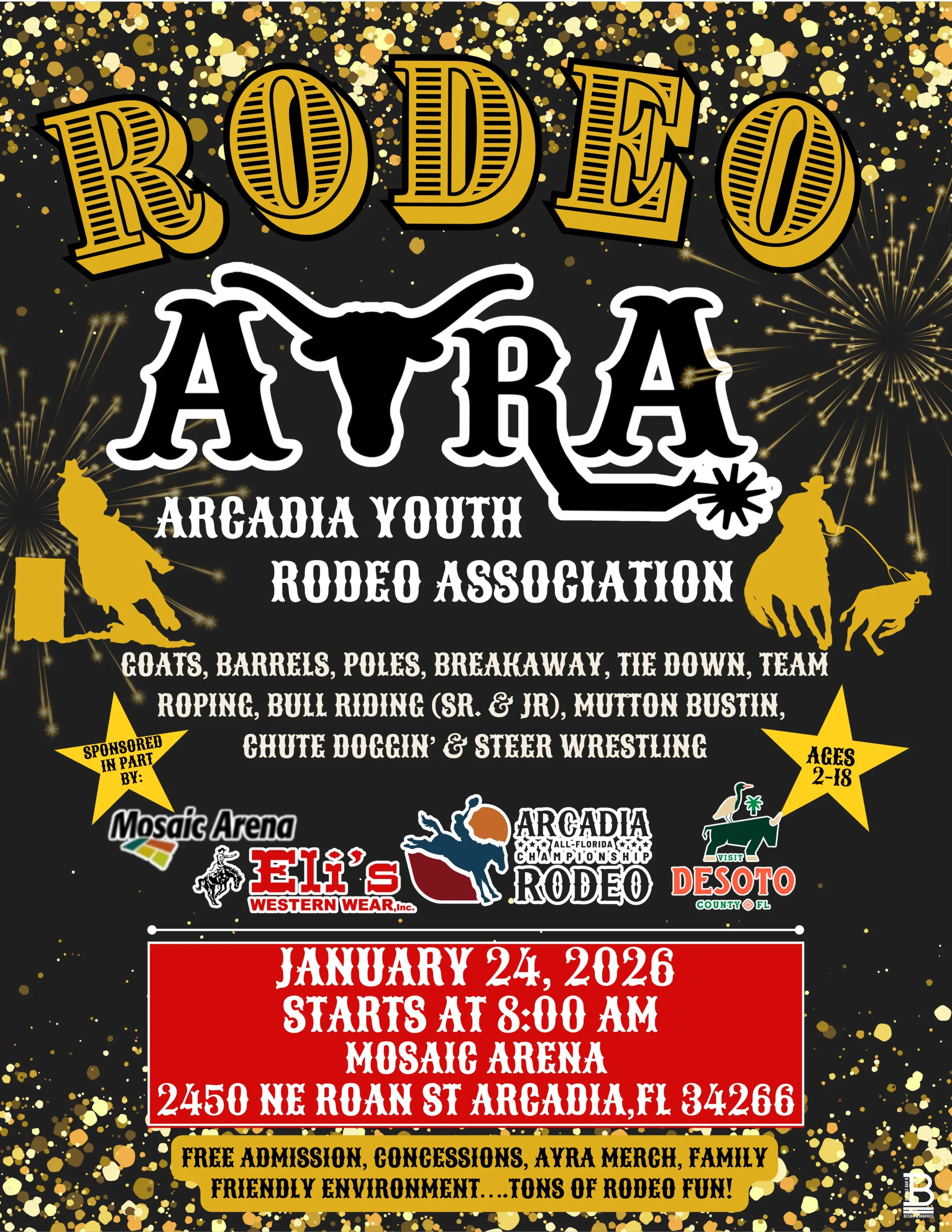 The Arcadia Youth Rodeo Association is hosting its 2026 kickoff event on January 24th, starting at 8am at Mosaic Arena, 2450 NE Roan St., Arcadia, FL.