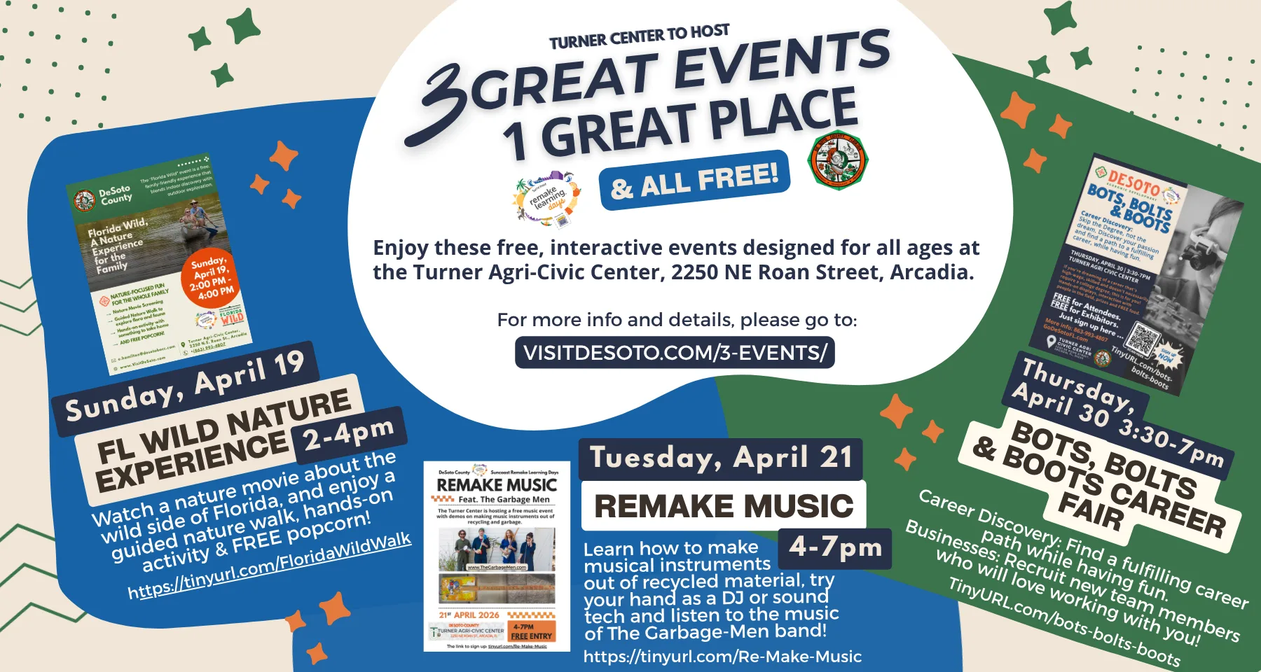 All three events will be held at the Turner Agri-Civic Center, 2250 N.E. Roan Street, Arcadia. For more information, call 863-993-4807.
