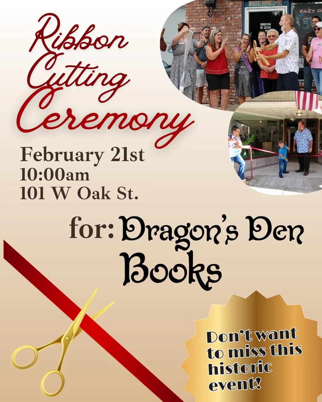 Join Dragon’s Den Books for its grand reopening on Saturday, February 21, 2026, at a new location — 101 W. Oak Street — in downtown Arcadia.