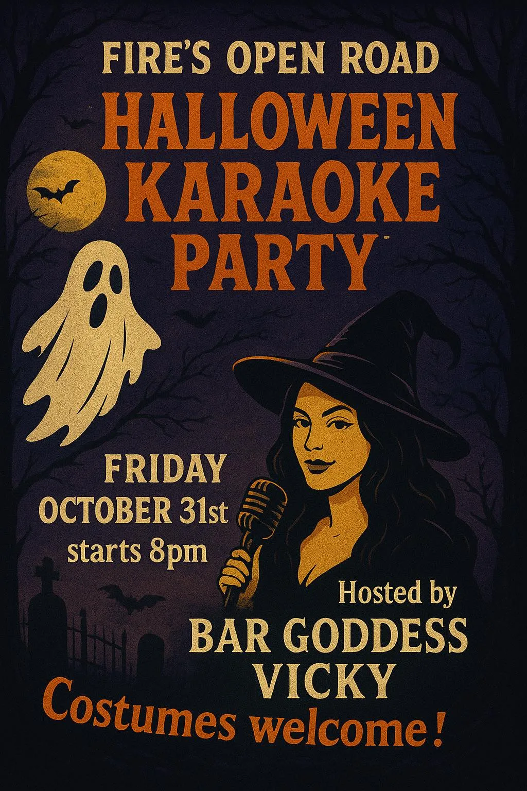 Halloween Group karaoke at Fire’s Open Road Bar on October 31, starting at 8pm!