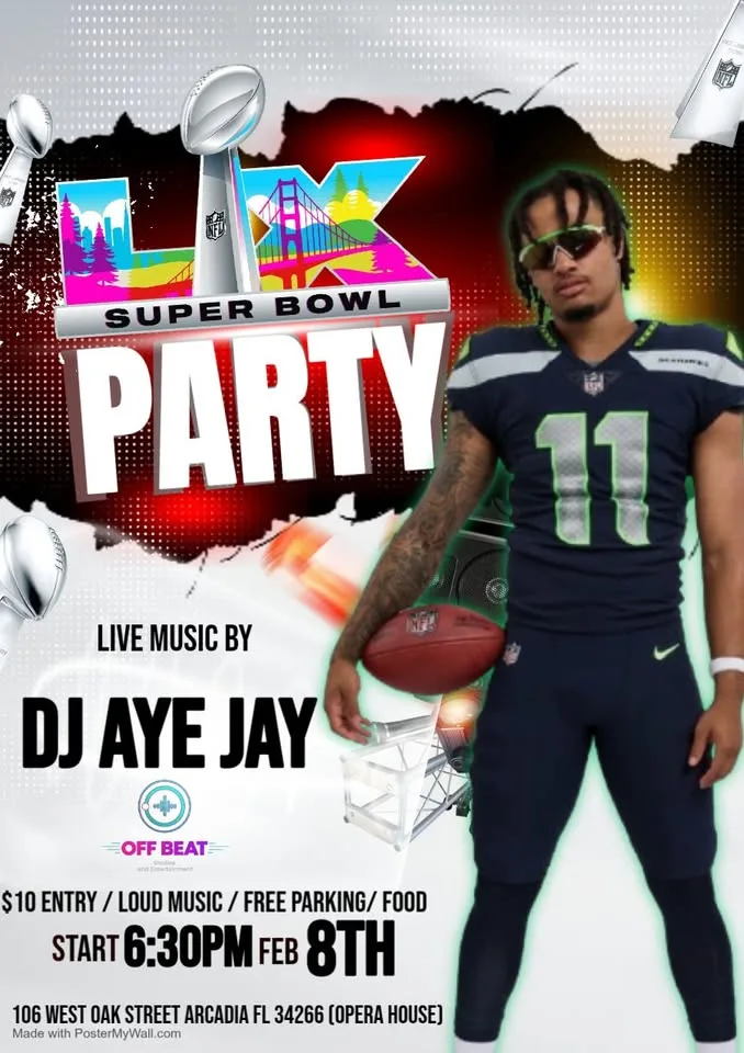 Looking for the ultimate spot to watch the Super Bowl? Offbeat Studios & Entertainment is taking over the Opera House in Arcadia for a night of football, food, and high-energy music!