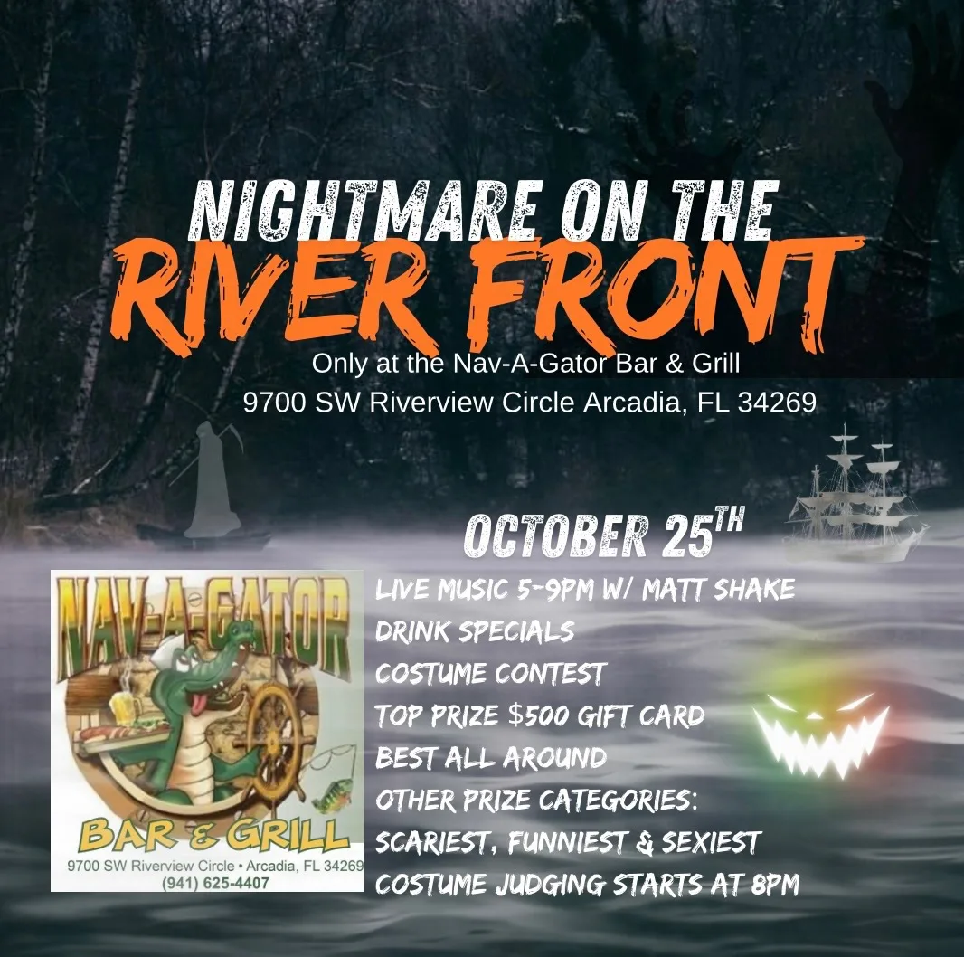 Come one come all for the first annual Halloween costume party at the Nav-A-Gator, A.K.A Nightmare on The Riverfront!
