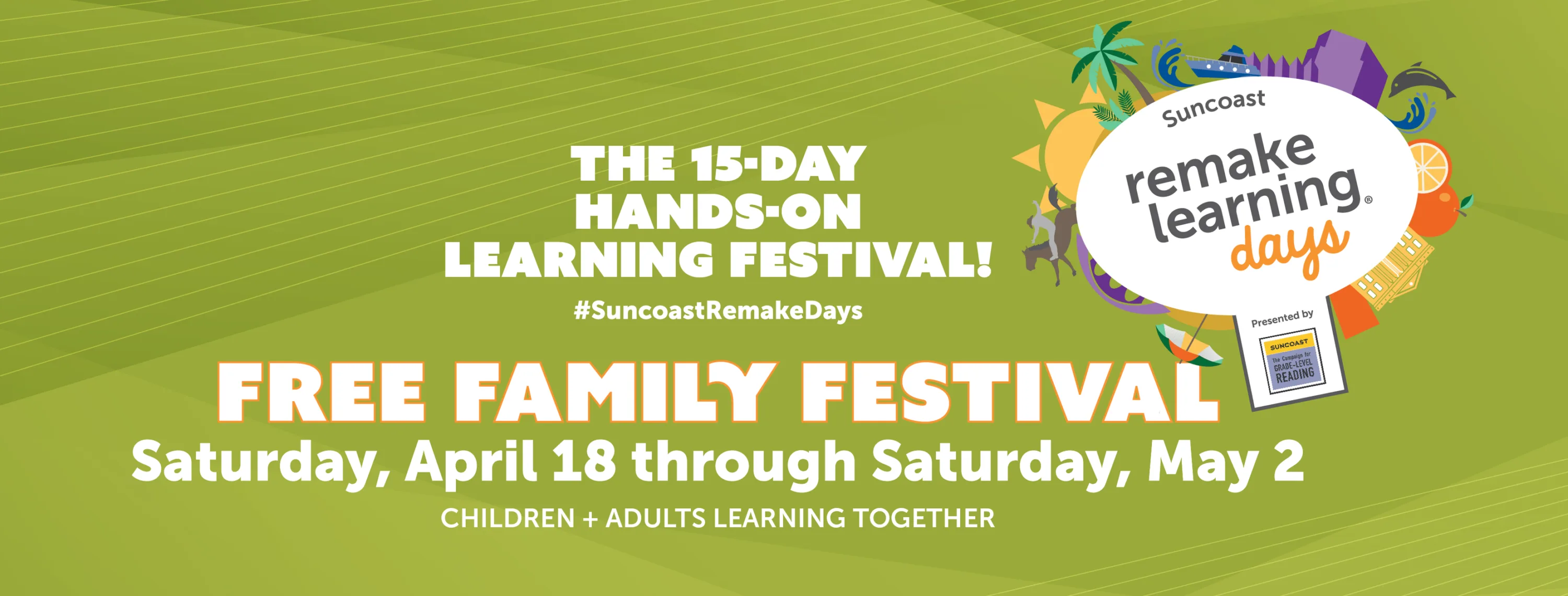 The festival runs from Saturday, April 18 through Saturday May 2 at multiple locations. For more information about Suncoast Remake Learning Days, call 941-952-1413 or go to www.gradelevelreadingsuncoast.net.